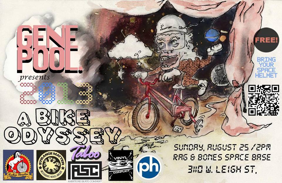 Rag & Bones is a volunteer run space which means nobody gets paid. So we will be closed on Saturday, August 24th, while we are at our real jobs. Sadly we live in capitalistic times, where money is the currency, not community fullfillment. However, on Sunday August 25 The Gene Pool (art collective) is hosting a Solar System Race.